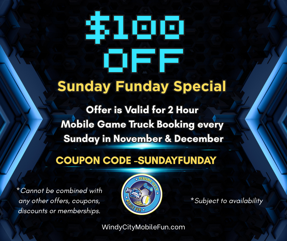 - $50 Off ALL and Windy City Mobile Fun bookings ALL YEAR LONG!
